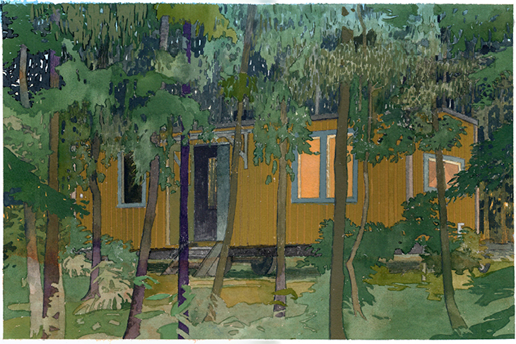 Den värmländske konstnären Leif Engströms (f. 1992 i Brunskog, Sverige) utställning Fönsterband på ValstaKonst är hans hittills största utställning, både till yta och antalet visade verk. Engström har under kort tid snabbt seglat upp som ett av den svenska konstscenens stora namn. I Engströms konstnärskap möts vi av motiv där förortens brutalistiska landskap hamnar i ett melankoliskt möte tillsammans med växtlighet och stark färgsättning, han har själv ett stort intresse särskilt för folkhemmets och välfärdens arkitektur. Just i den kontexten blir Valsta simhall ett unikt möte med Engströms konst, då byggnaden och dess tidigare verksamhet ingick i folkhemmets tanke om en slags välfärd tillgänglig för alla. Vi kan se spår i Engströms målningar där inspiration tagits från japansk bildkultur, men även en slags magisk realism, kombinerad med en nordisk bildtradition.