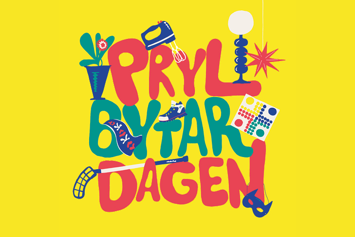 På Prylbytardagen byter vi grejer, inte kläder. Max fem saker kan lämnas in och bytas mot nya.